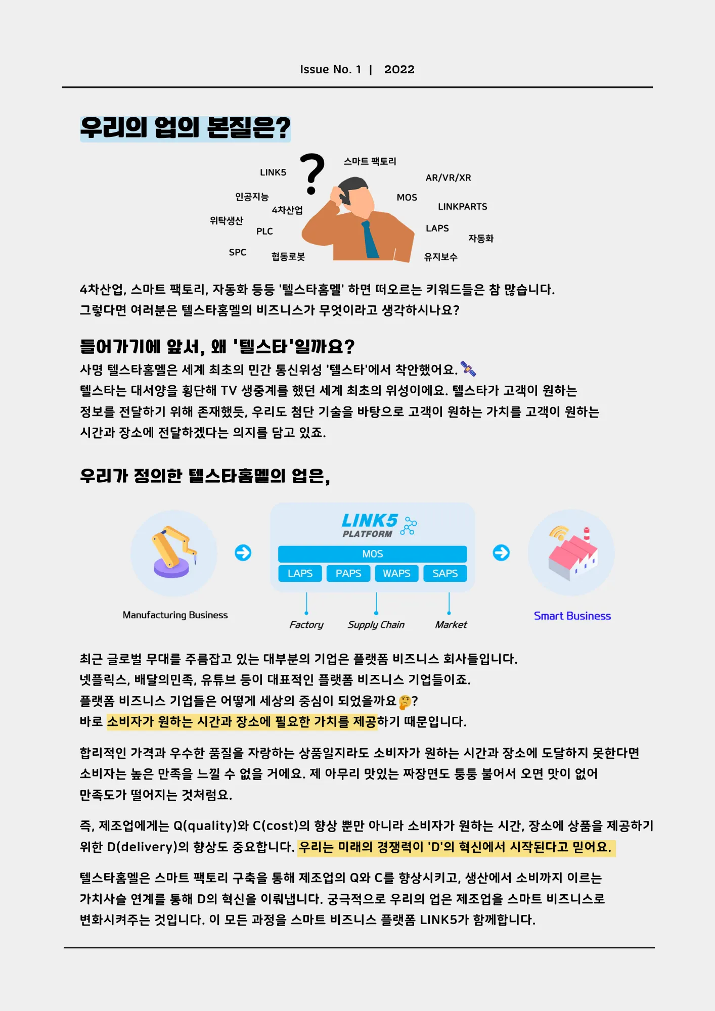 LINK5는 제품의 품질과 생산성 관리가 필요한 고객을 위하여 탄생 된 플랫폼으로, 고객의 Smart Business를 지원하기 위하여 개발 되었습니다.